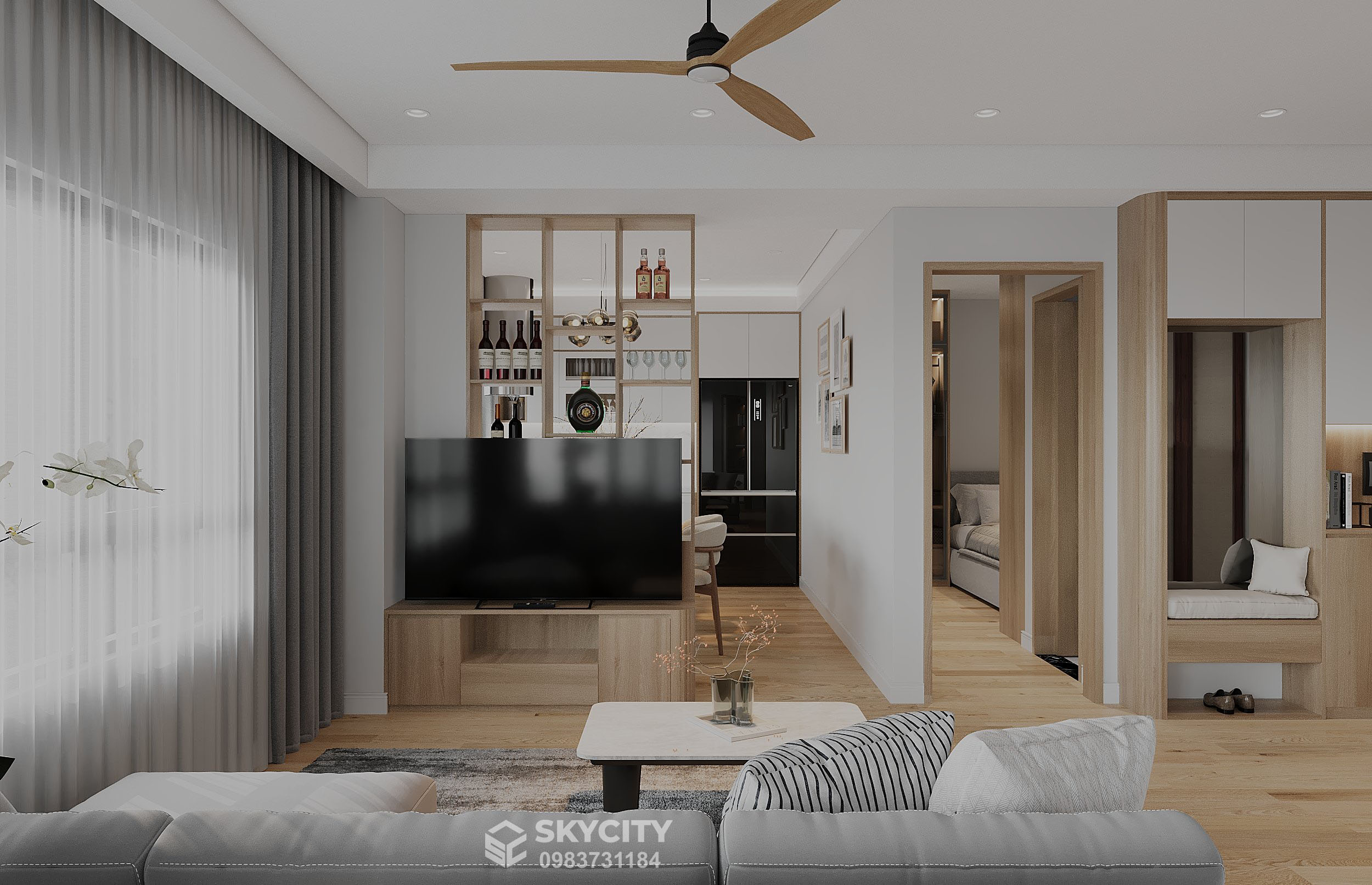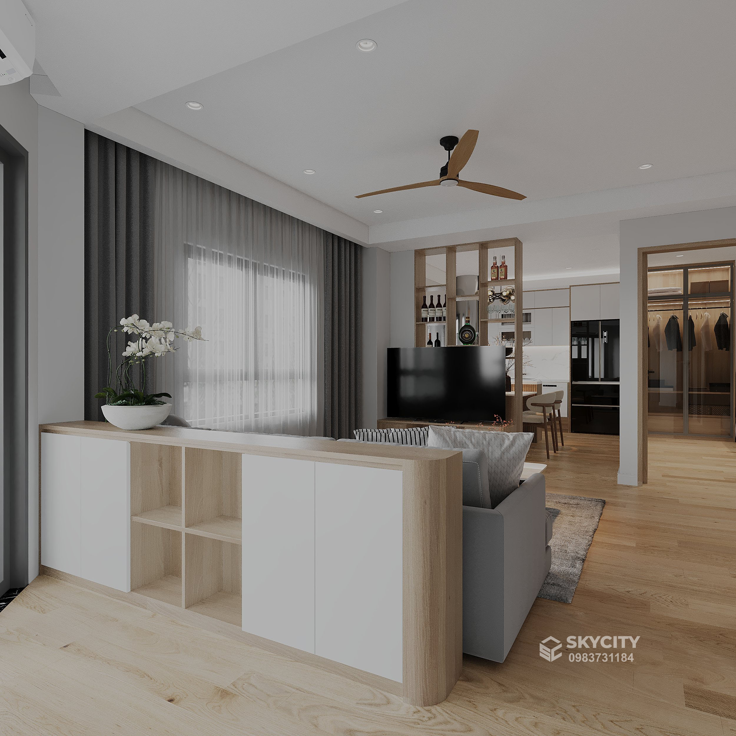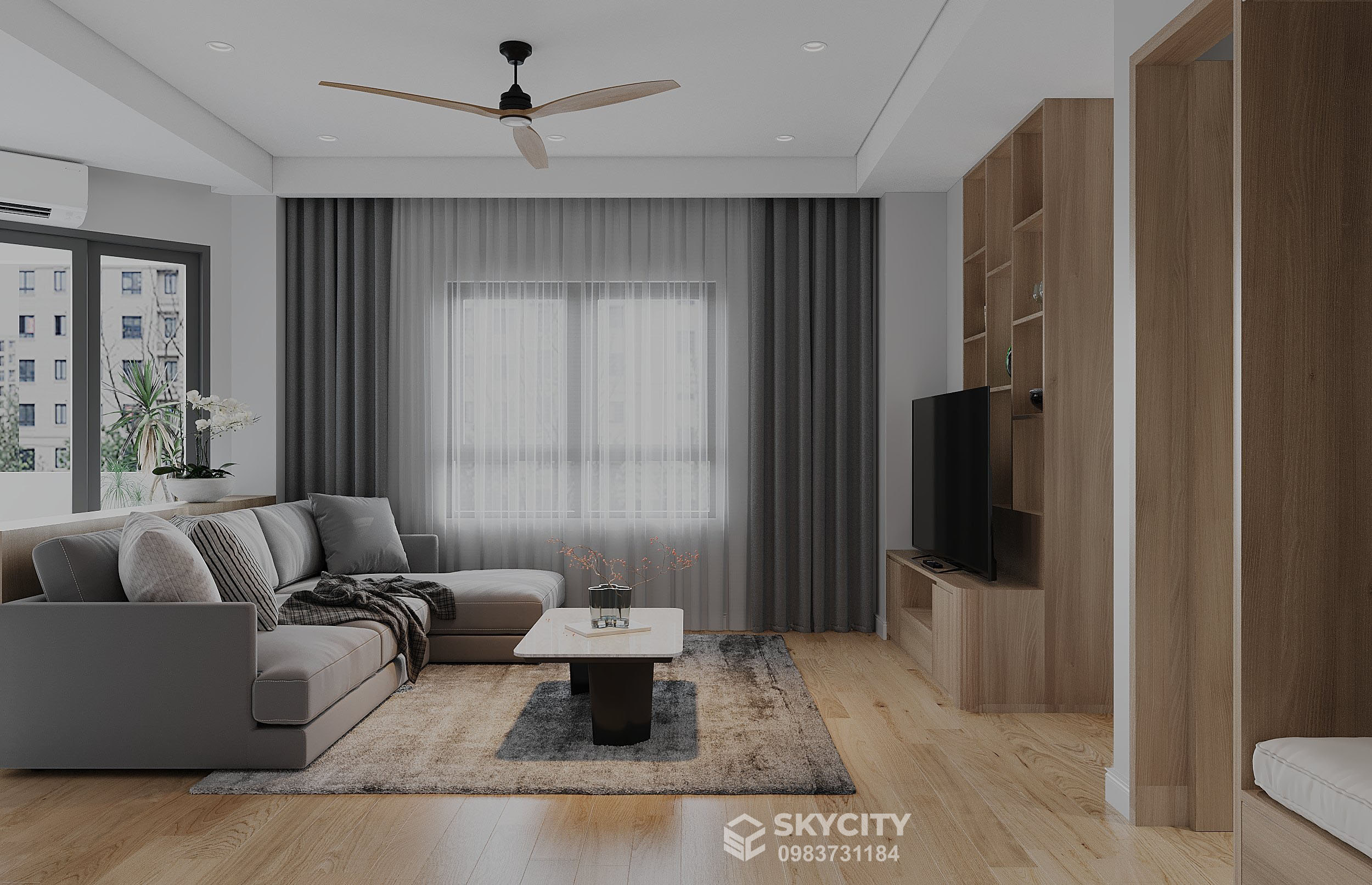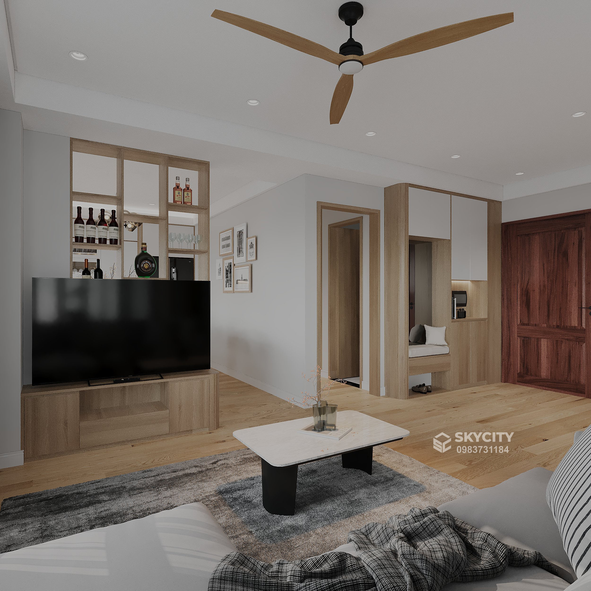 Diện tích: 78m2 Chi phí cải tạo: 180.000.000đ Chi phí nội thất: 300.000.000đ Nội dung thi công: Trần thạch cao; Sơn bả; Điện; Nội thất gỗ phòng khách, bếp, ban công, 2 phòng ngủ; 2 WC, Giấy dán tường; Rèm; Lưới an toàn; Giàn phơi thông minh