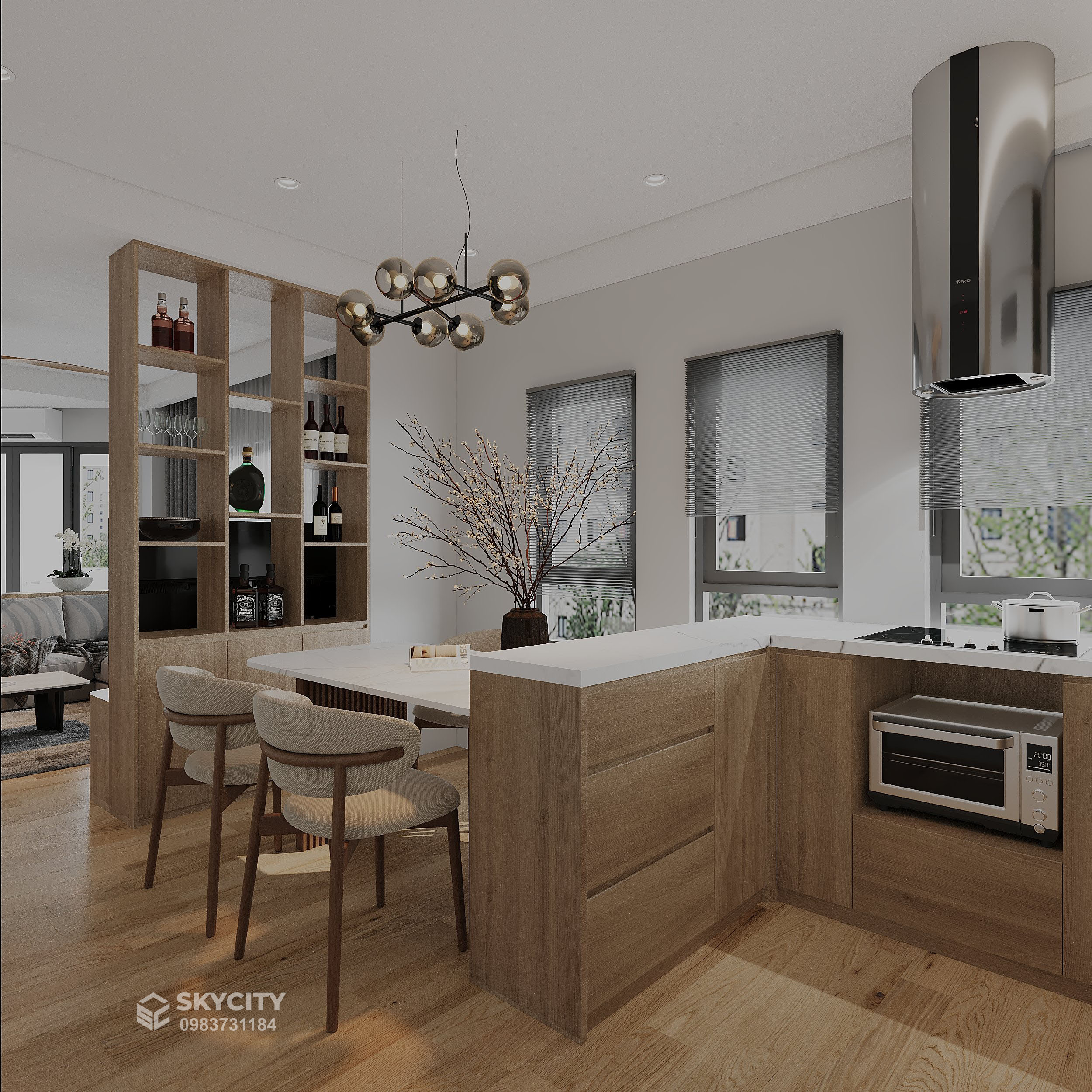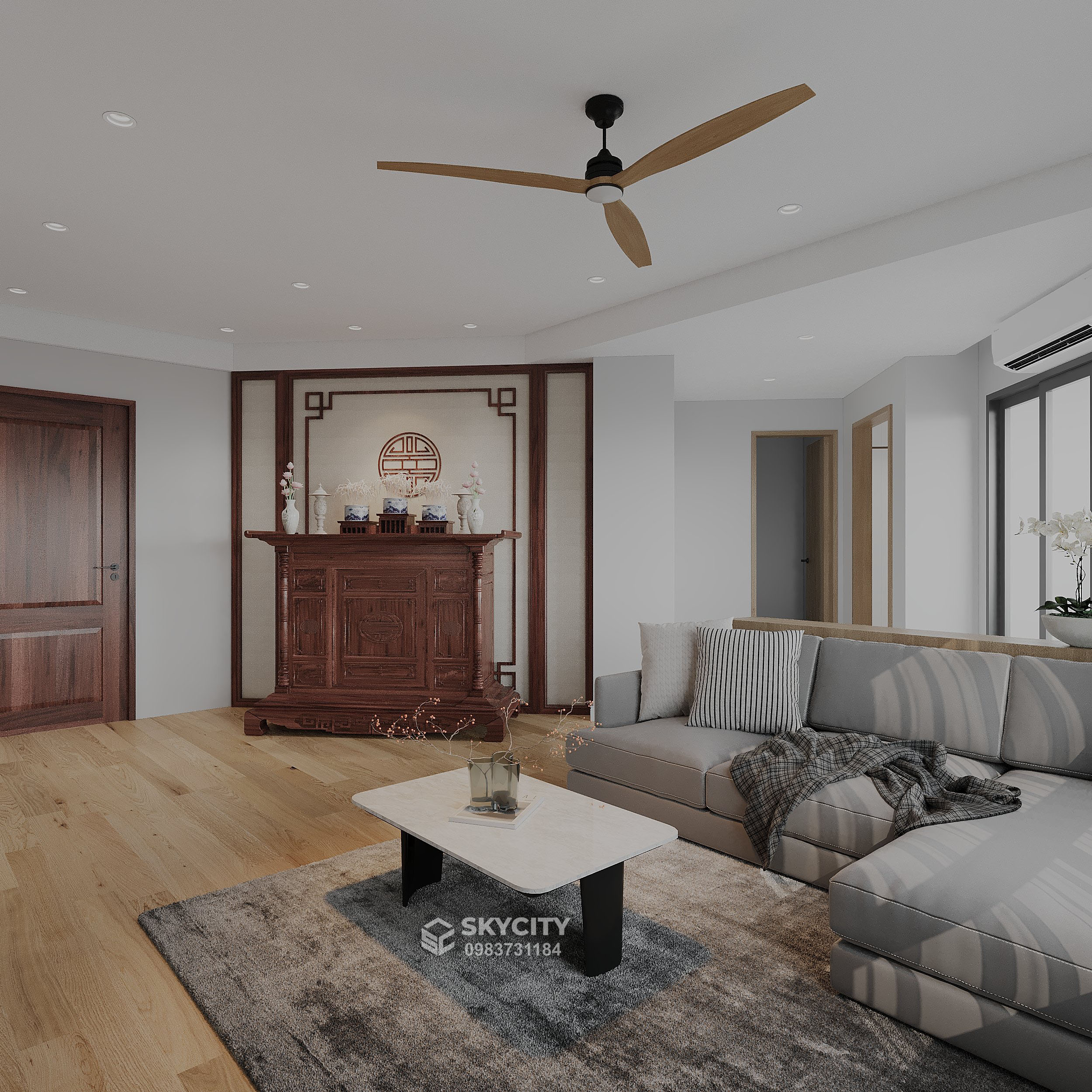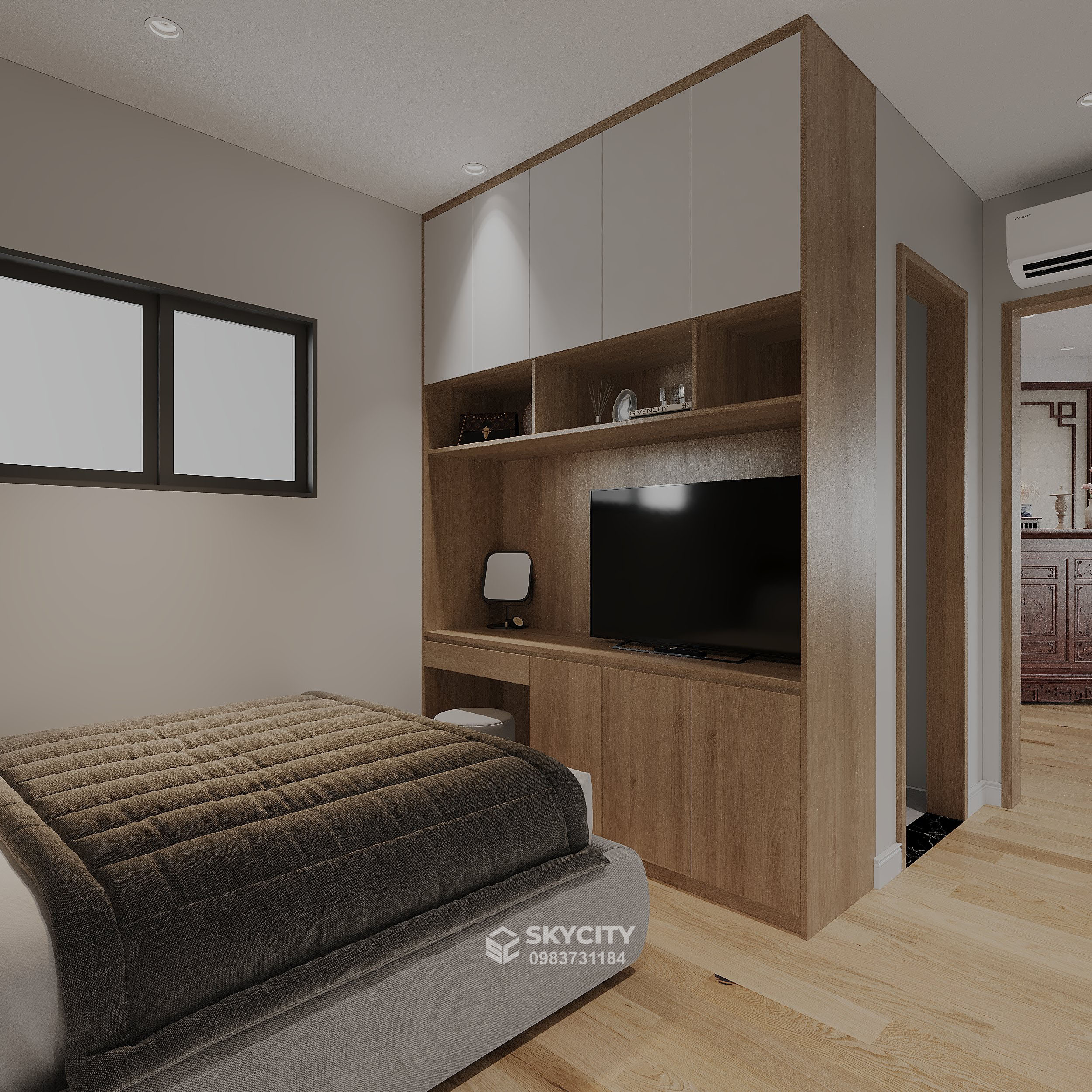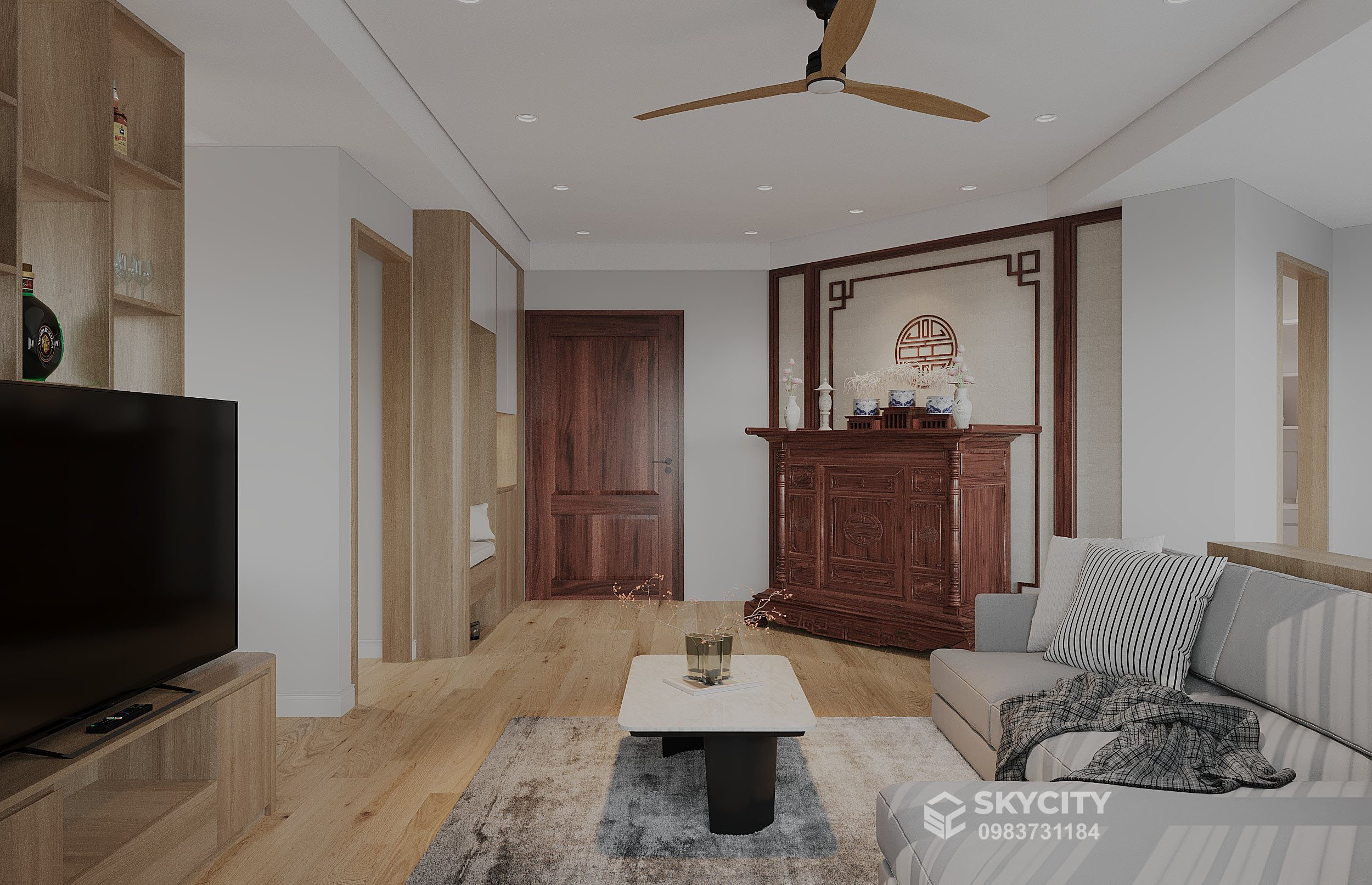 Diện tích: 78m2 Chi phí cải tạo: 180.000.000đ Chi phí nội thất: 300.000.000đ Nội dung thi công: Trần thạch cao; Sơn bả; Điện; Nội thất gỗ phòng khách, bếp, ban công, 2 phòng ngủ; 2 WC, Giấy dán tường; Rèm; Lưới an toàn; Giàn phơi thông minh