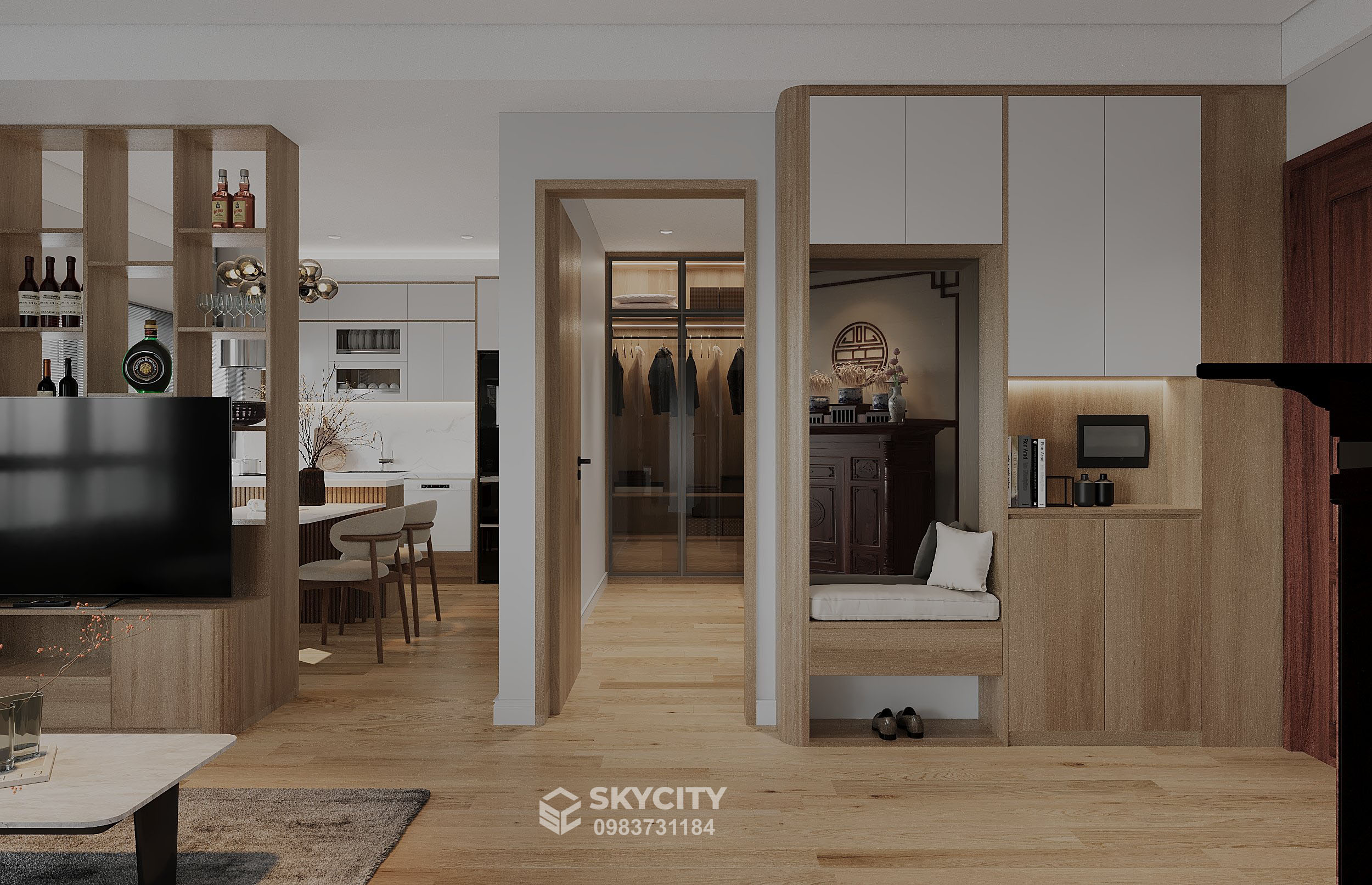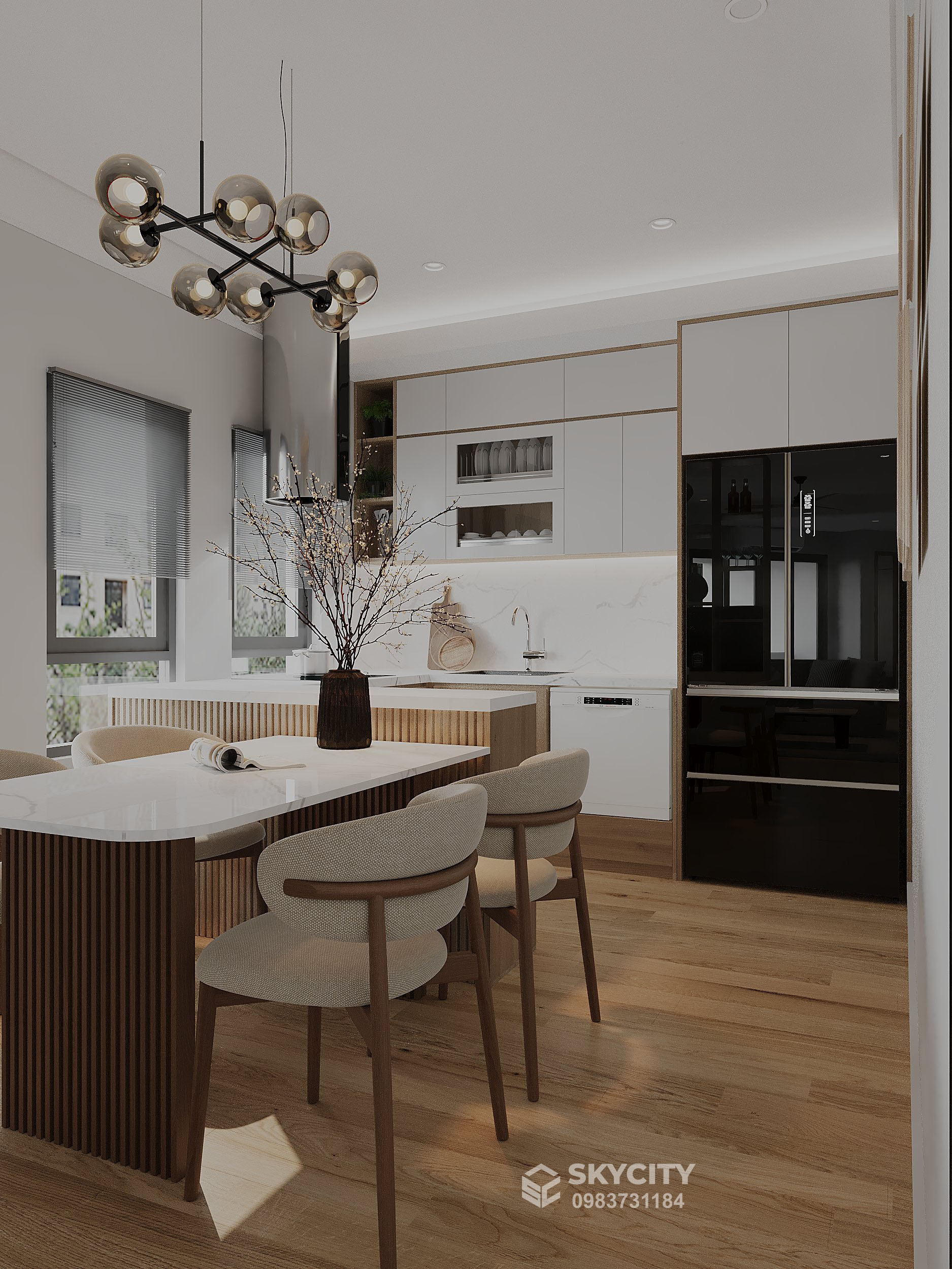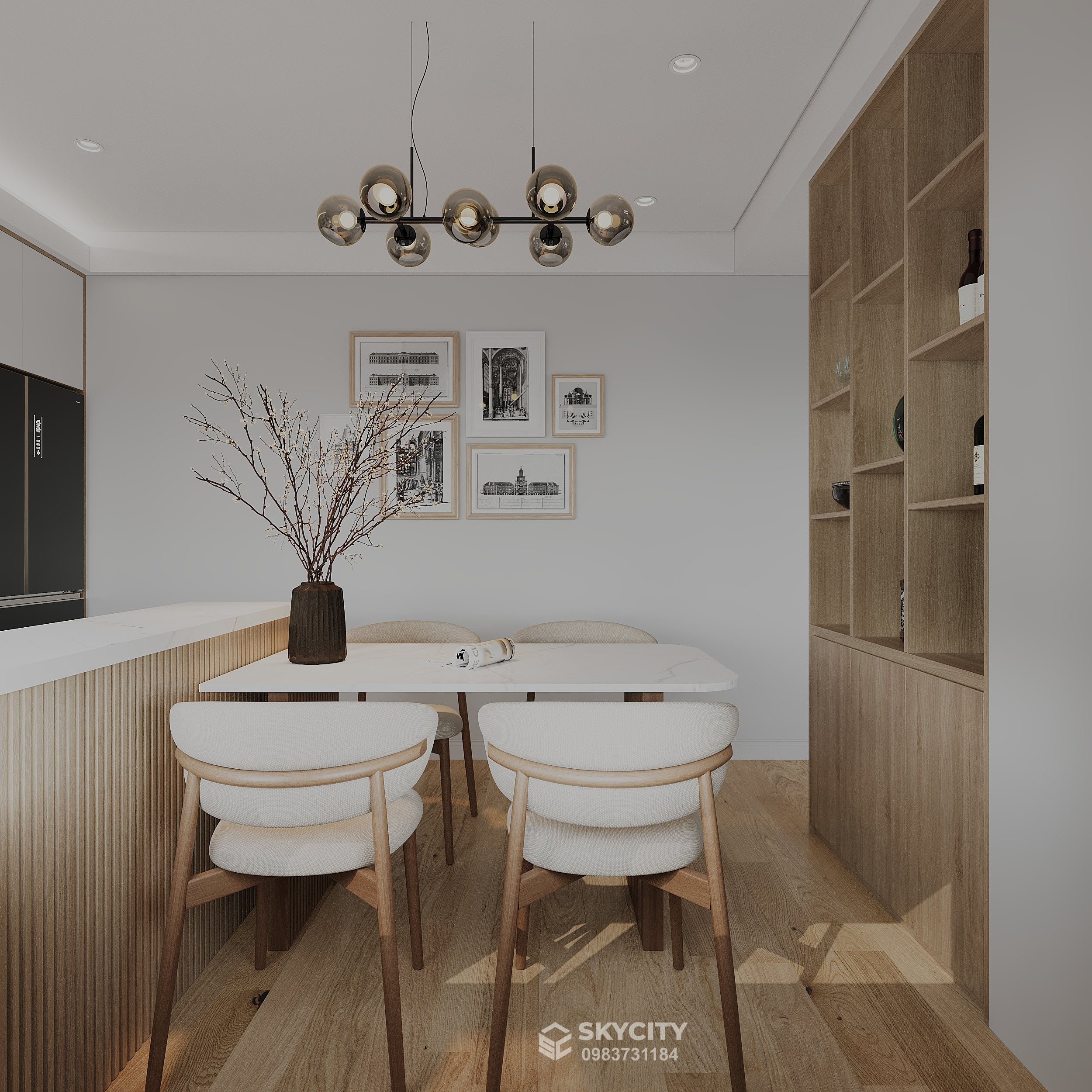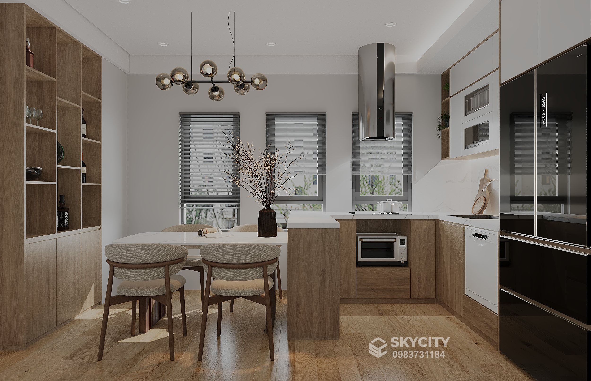 Diện tích: 78m2 Chi phí cải tạo: 180.000.000đ Chi phí nội thất: 300.000.000đ Nội dung thi công: Trần thạch cao; Sơn bả; Điện; Nội thất gỗ phòng khách, bếp, ban công, 2 phòng ngủ; 2 WC, Giấy dán tường; Rèm; Lưới an toàn; Giàn phơi thông minh