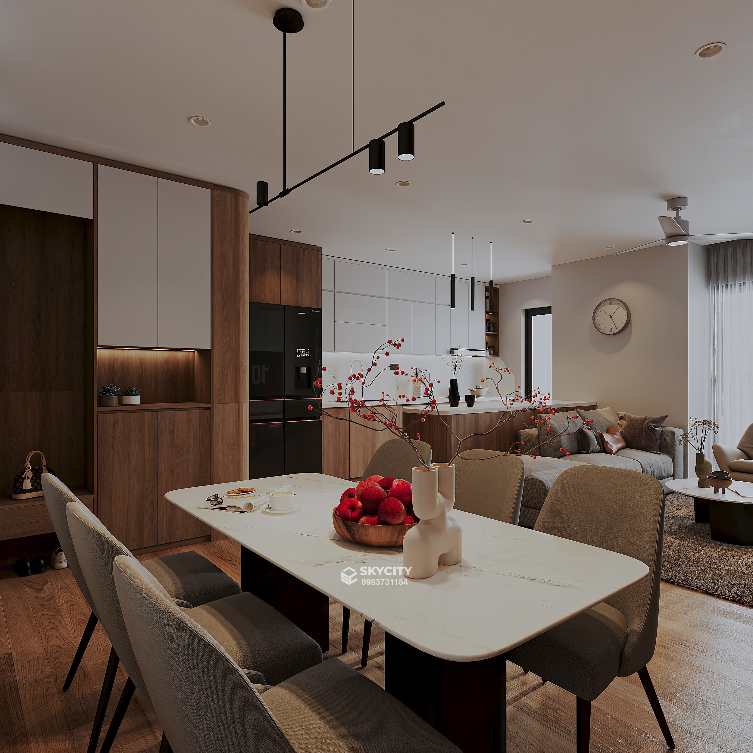 Diện tích: 75m2 Chi phí cải tạo: 80.000.000đ Chi phí nội thất: 140.000.000đ Nội dung thi công: Cải tạo 2 WC, Trần thach cao, sơn bả,chống thấm, Nội thất gỗ phòng khách, bếp, 2 phòng ngủ;
